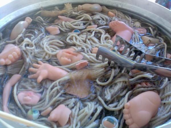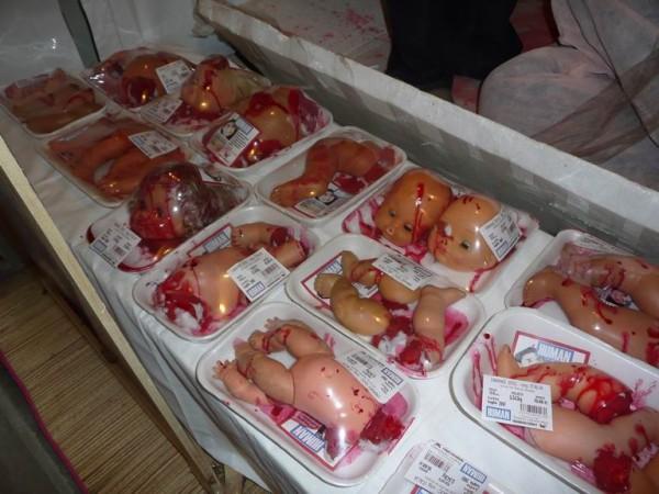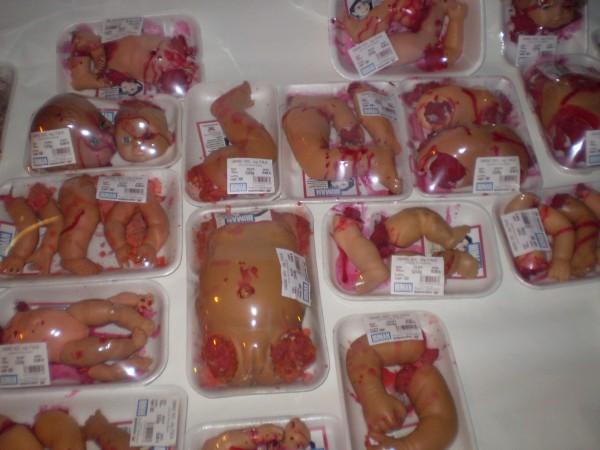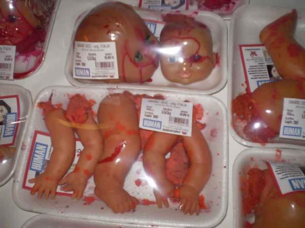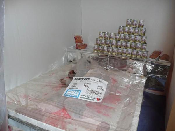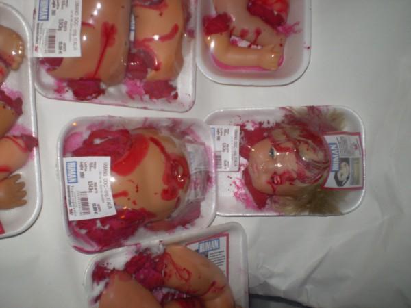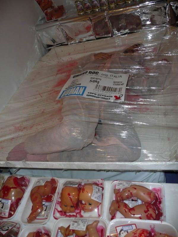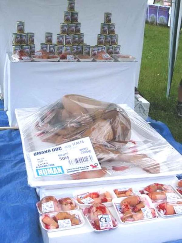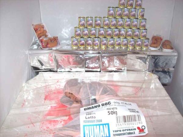 Galleria fotografica della performance (dal titolo macelleria HUMAN) del gruppo Topo Operaio al festival “Vegetariando” di Bologna nell’estate del 2007 grazie alla quale Ca decise di rielaborare il bambolotto per farne una pubblicità antispecista dal titolo Chi mangi oggi?.