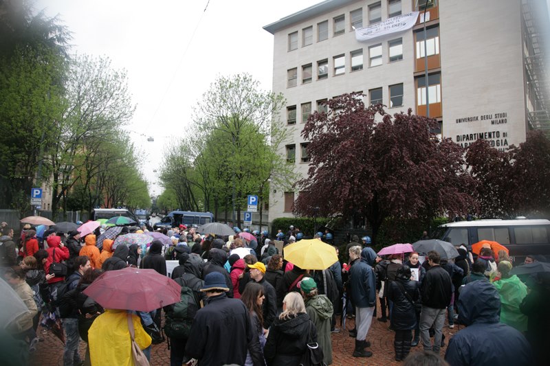Milano, sabato 20 aprile 2013. In concomitanza con un corteo contro la vivisezione cinque attivisti occupano i laboratori di vivisezione dell’Istituto di Farmacologia (già colpiti nel 2006 da un’azione di liberazione animale) e si barricano dentro. Nel frattempo il corteo si dirige presso l’edificio dell’università per sostenere l’occupazione dalla piazza. Dopo dieci ore di assedio e trattative, vengono liberati centinaia di animali.