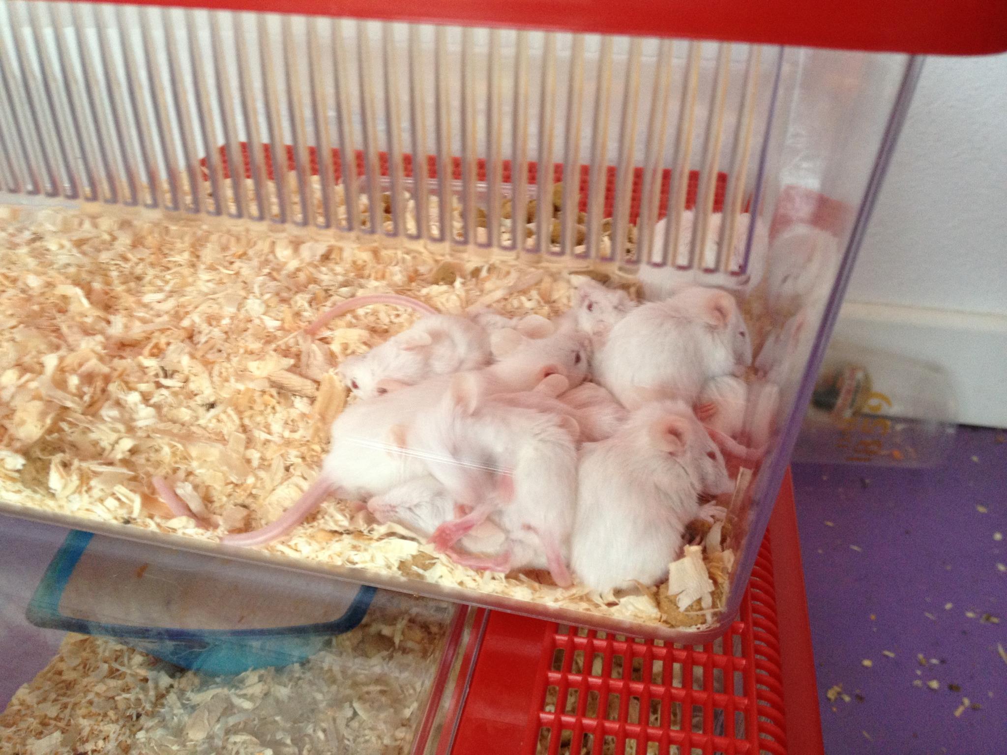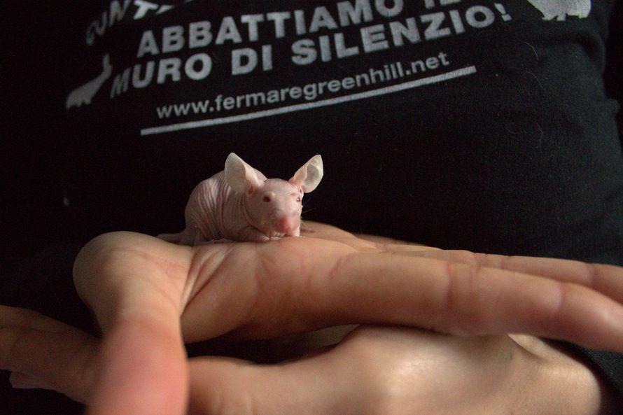 Lui è uno dei piccoli “topi nudi” salvati grazie all’azione di ieri. Con loro molti topi bianchi, neri e marroni.
