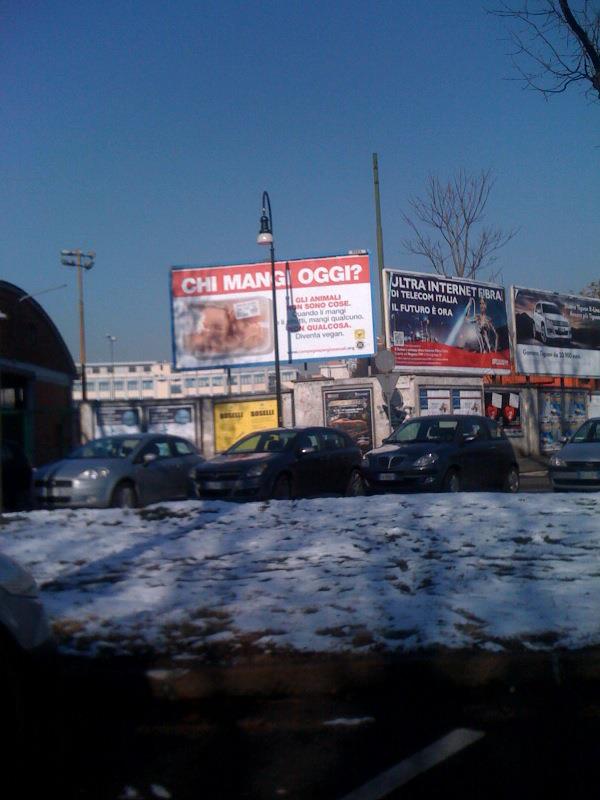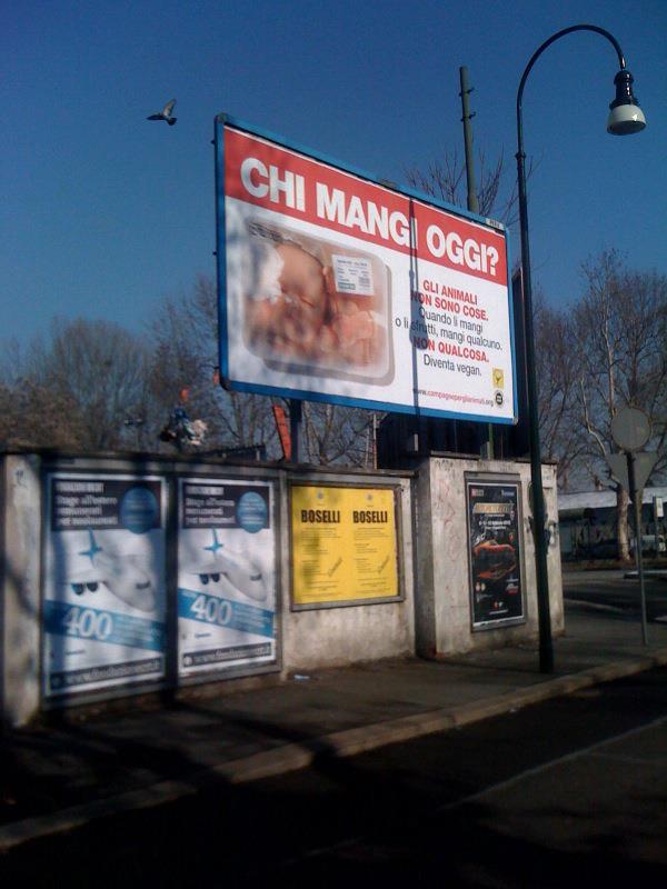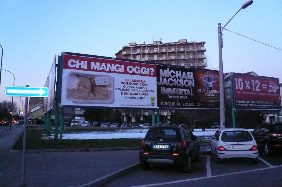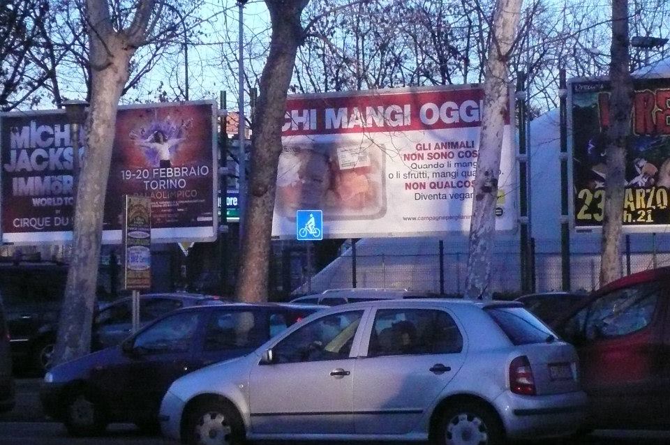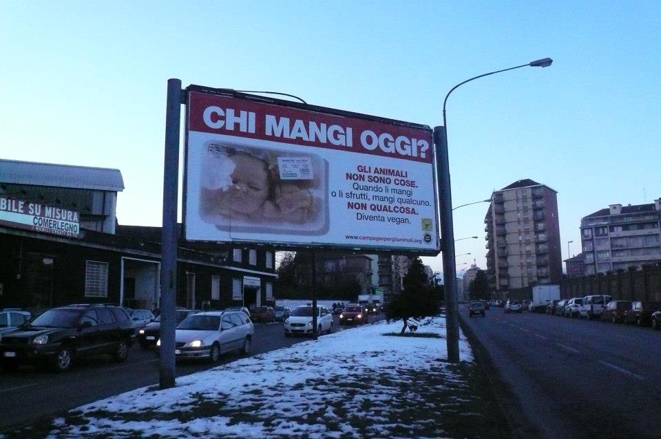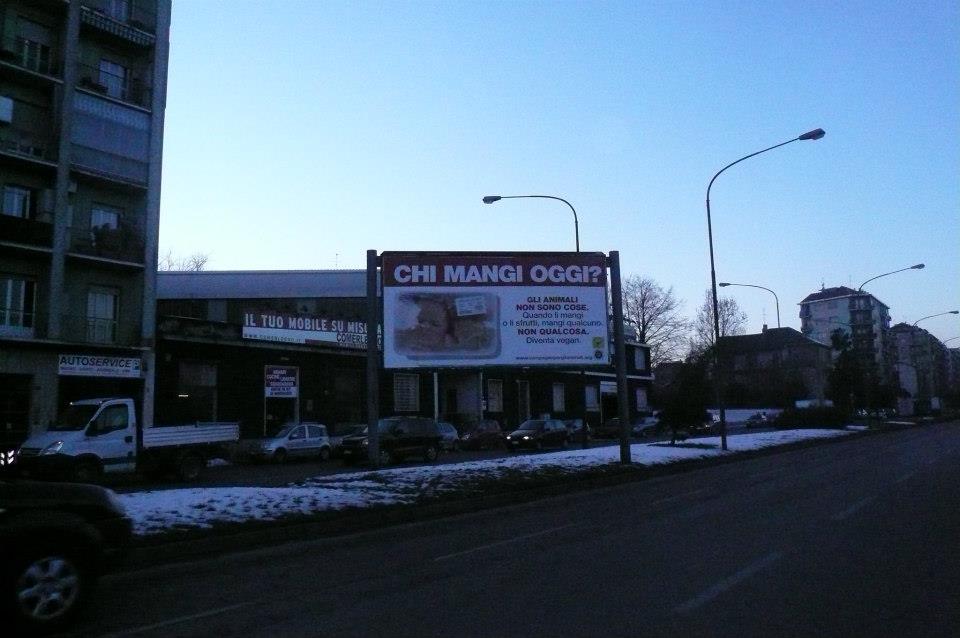 Sbarcano a Torino i mega cartelloni antispecisti “Chi mangi oggi?”, è possibile infatti incontrarli per due settimane nelle principali arterie stradali della città di Torino!
